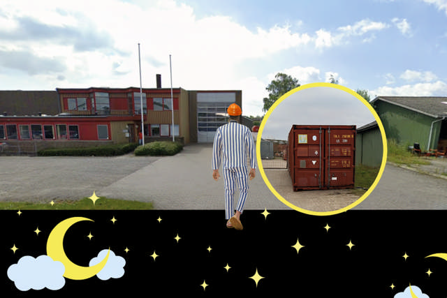 Du finder dine varer i den røde container, som er placeret til højre for bygningen på Langelandsvej 10.