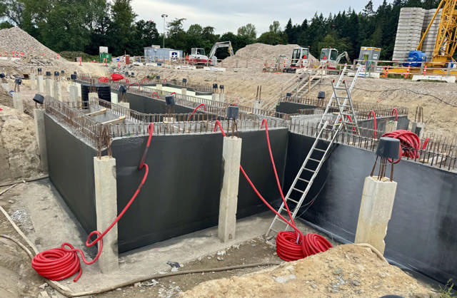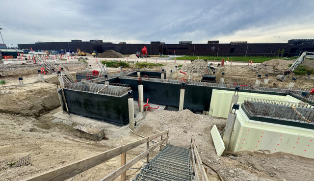 På en transformerstation i Nordhavnen, København, er polymermembranen anvendt som fuld vandtætning af kælderkonstruktionerne.